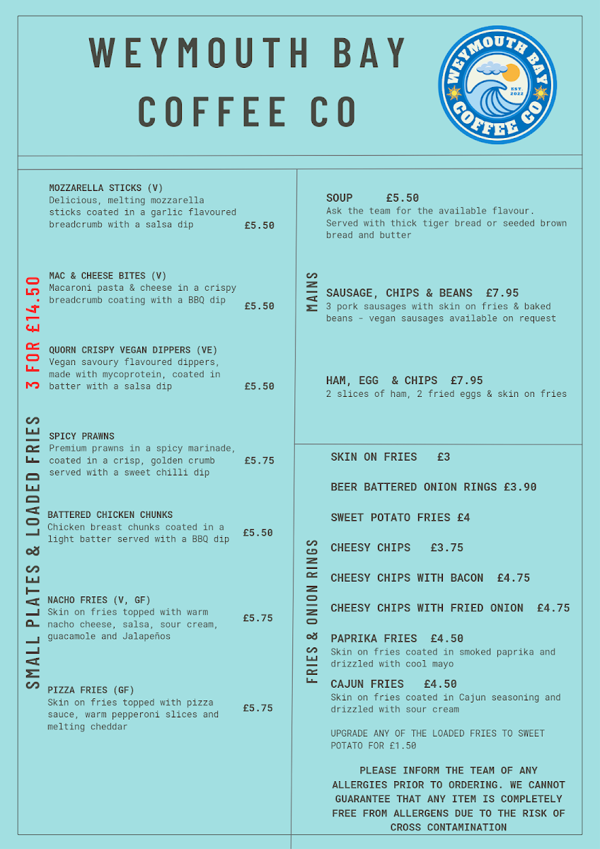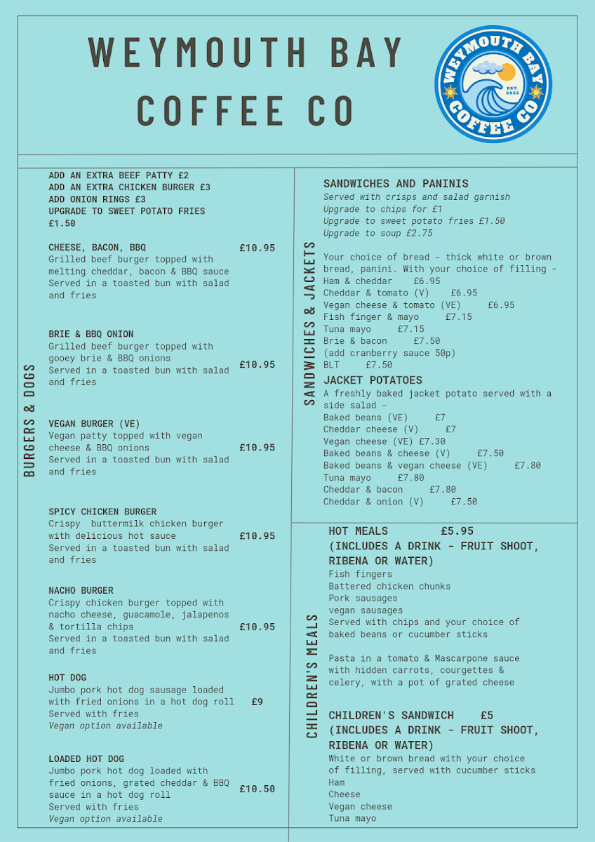 Welcome to Weymouth Bay Coffee Co, nestled in the picturesque Lodmoor Country Park on Beach Road, Weymouth. This charming café prides itself on offering an array of delightful dishes that cater to every palate. Start your day with a hearty Traditional Breakfast or indulge in their famous Brioche French Toast, both showcasing quality ingredients that leave diners delighted.